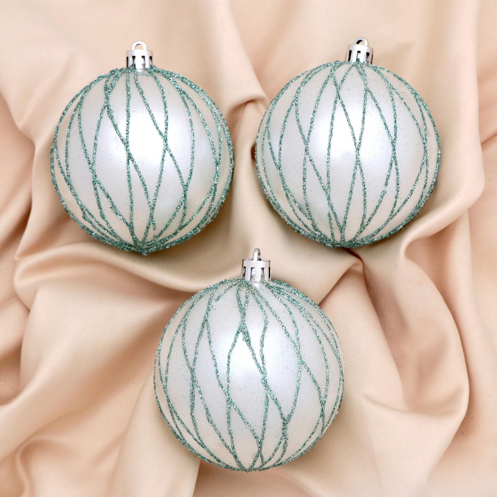 Набор шаров 3 шт/уп. 8 см "Геометрические полосы" зелено/белый арт.6490379
