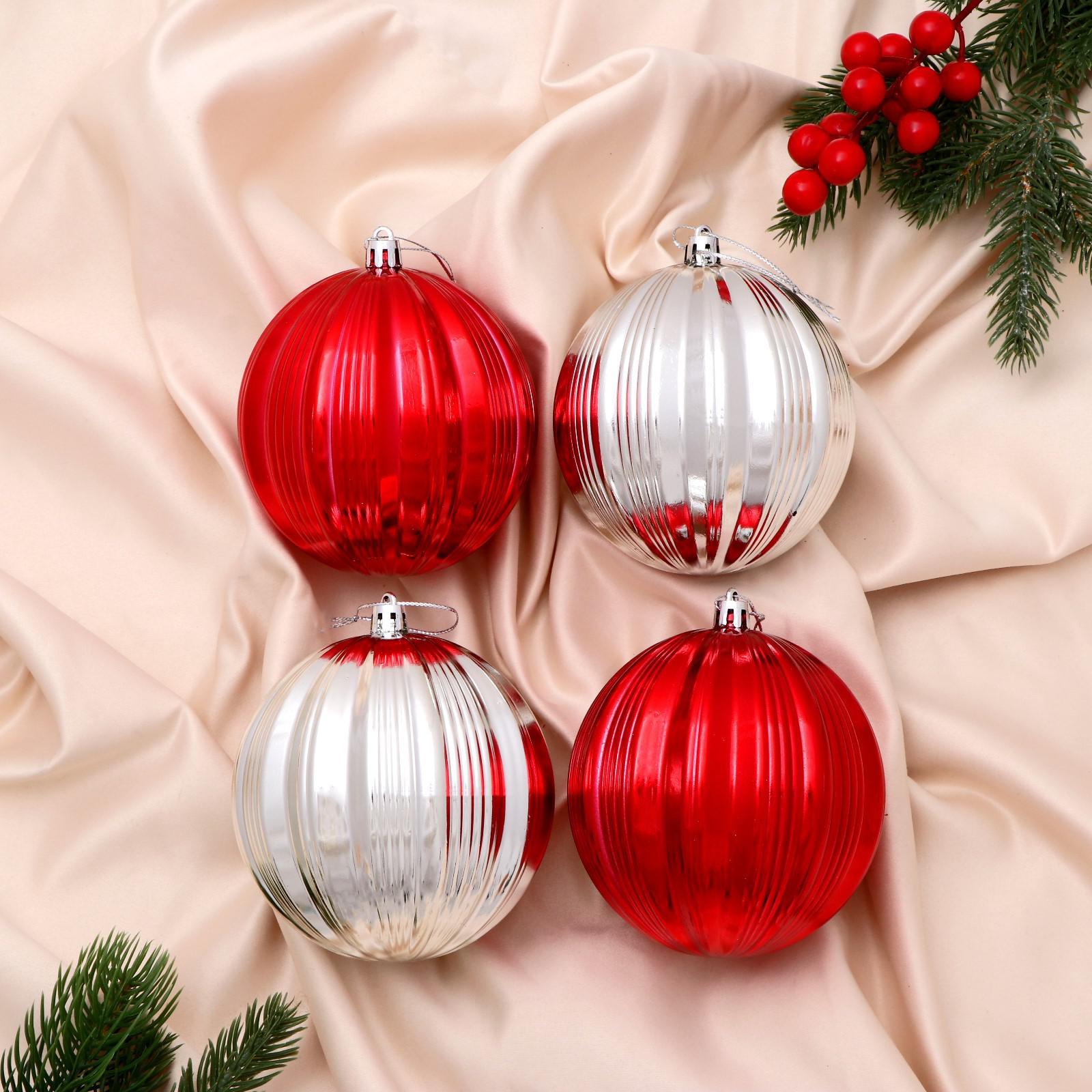 Набор шаров 4 шт/уп. 10 см "Марсельеза" серебристо-красный арт.4192739