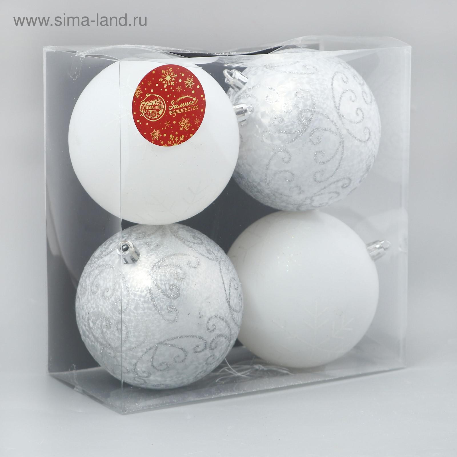 Набор шаров 4 шт/уп. 10 см "Морозные узоры" серебристо-белый арт.4942033