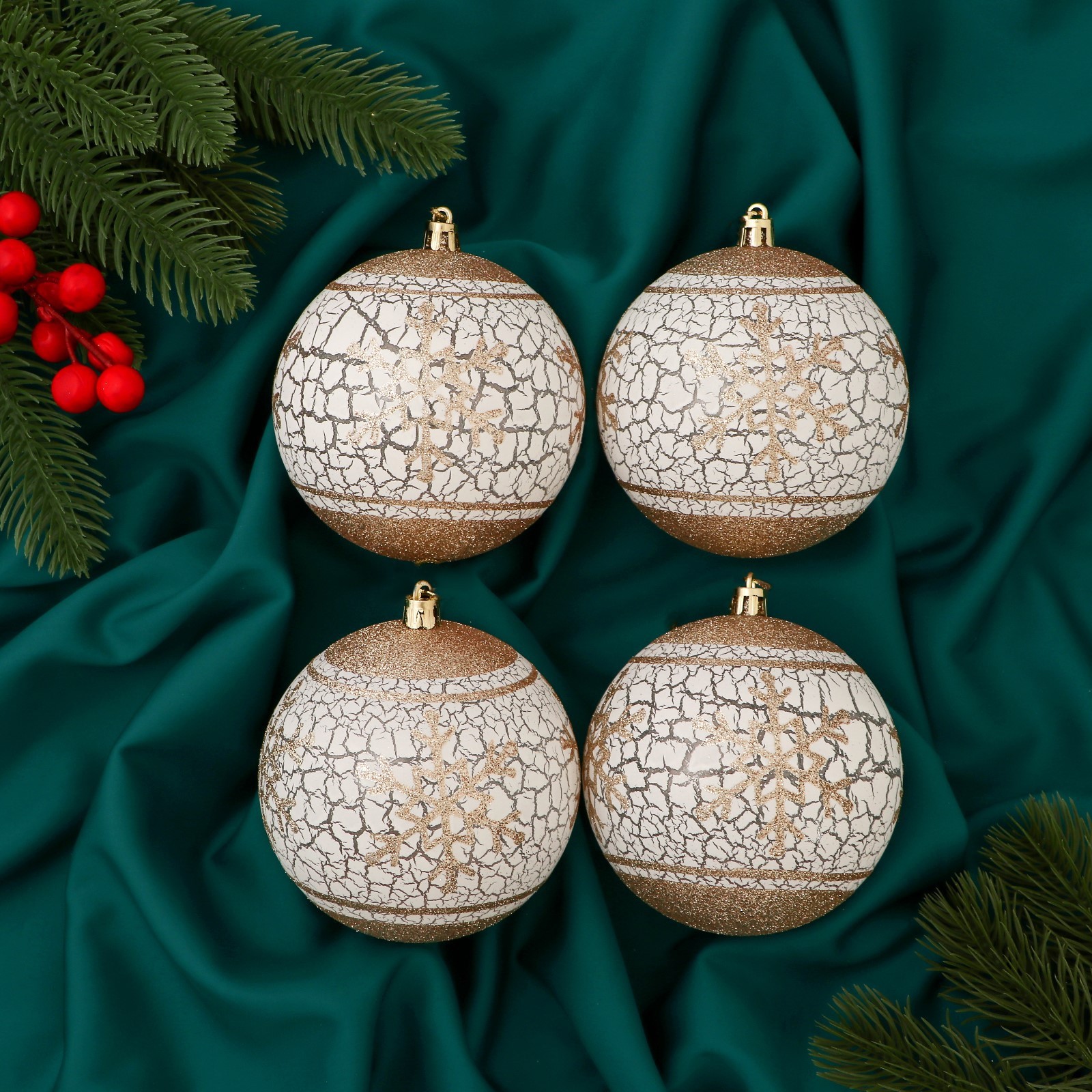 Набор шаров 4 шт/уп. 10 см "Праздничные узоры треск" бело-золотой 9510291
