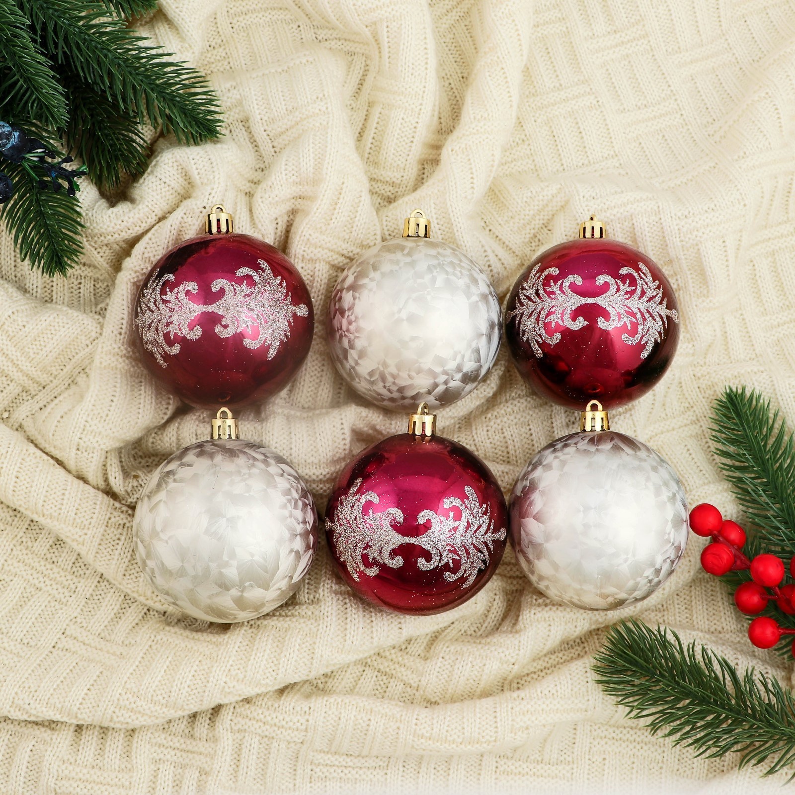 Набор шаров 6 шт/уп. 8 см. "Ночка" орнамент бордово/золотой арт.9510506