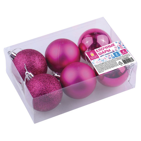 Елочные шары - непременный атрибут Нового Года. Набор станет ярким украшением новогодней ели и интерьера Вашего дома. Сочный цвет фуксии в сочетании с отделкой разной фактуры создадут атмосферу праздника и волшебства.