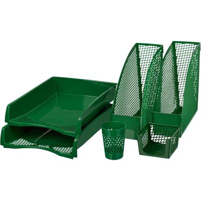 Оптимальный выбор для организации рабочего пространства. Обеспечит порядок на офисном столе. Для доступного и компактного хранения необходимых документов, оперативных записей, письменных принадлежностей. Количество товаров в наборе. Лоток горизонтальный — 2 шт (340×270×71 мм). Лоток вертикальный — 2 шт (255×110×250 мм). Карандашница — 1 шт (110×70 мм). Бокс для бумаги — 1 шт (100×100×68 мм)