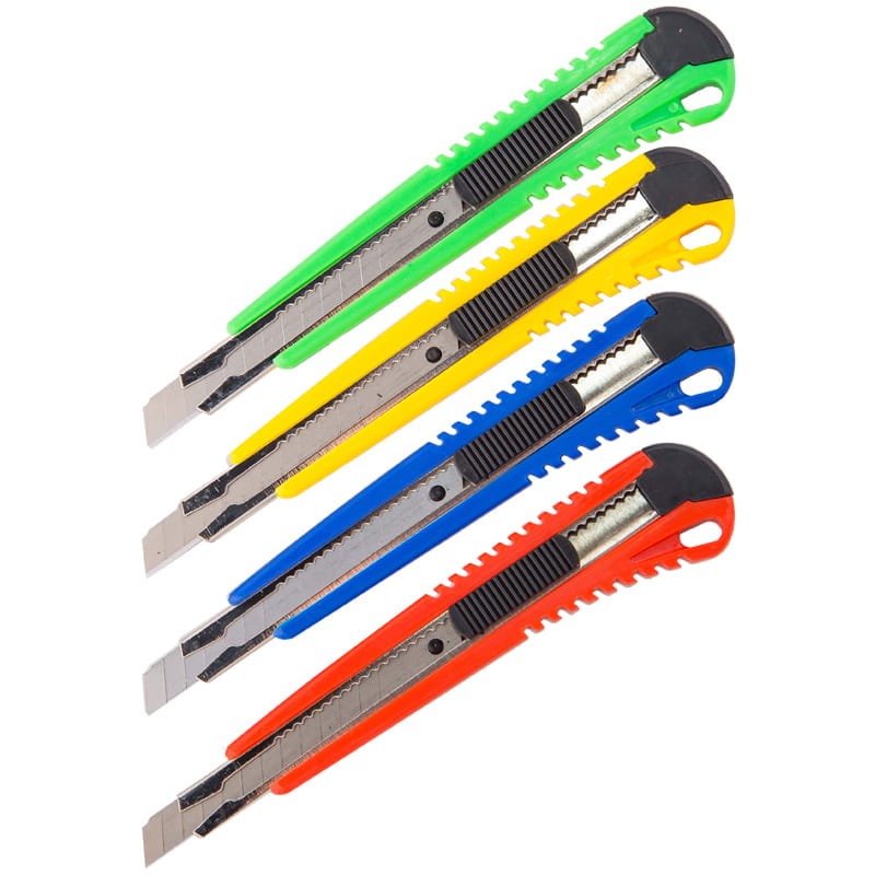 Нож канцеляр./9 мм/ "OfficeSpace" с фиксатором, метал. направляющ. ассорти арт.262450