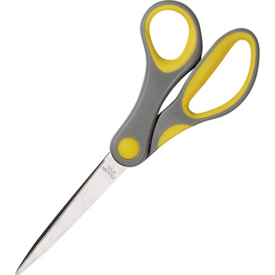 Канцелярские ножницы (офисные) Attache, выполненные из нержавеющей стали. Для оформления пластиковых колец анатомической формы выбрана комбинация из двух цветов: серый и желтый. Прорезиненные манжеты предотвращают скольжение пальцев. Элемент крепления обеспечивает плавную и мягкую работу лезвий. Длина ножниц — 20,5 см.