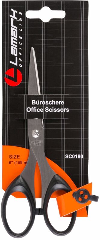 Ножницы канцелярские Lamark из нержавеющей стали. Симметричные пластиковые ручки с удобным захватом обеспечивают комфортную работу с материалами разной плотности. Размер ножниц 15,9 см. Поставляются в блистере с еврослотом.
