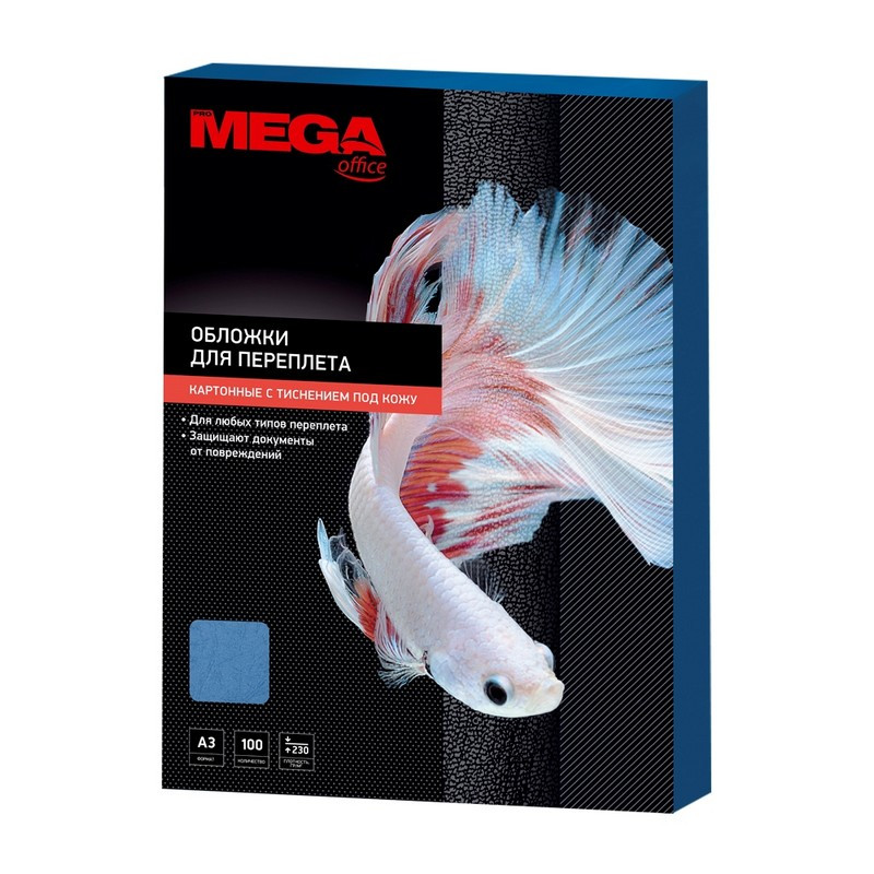 Обложки для переплета Promega office формата А3 плотностью 230 г/кв.м выполнены из прочного, устойчивого к износу картона синего цвета. Фактура поверхности имитирует кожу, что придает собранной брошюре официальный, строгий и солидный вид. В упаковке 100 штук.