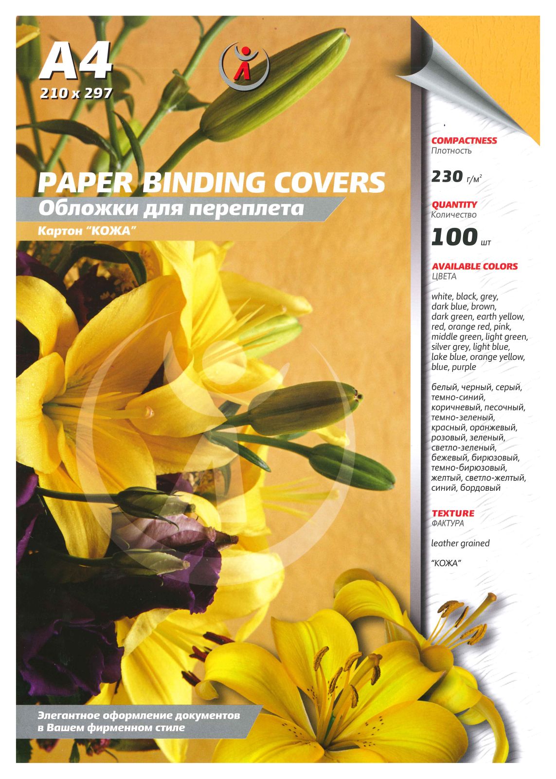 Обложка для переплета А4 Кожа "Реалист" 100 шт/уп. 230мкм. св.-оранжевая