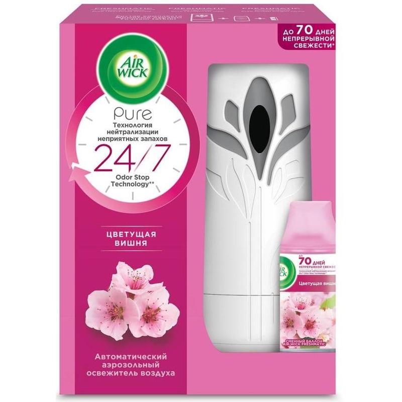 Освежитель воздуха Air Wick Pure Цветущая Вишня, 250 мл. Освежитель не содержит воды и эффективно устраняет неприятные запахи без мокрого распыления. Используйте освежители воздуха Air Wick Pure в каждой комнате, наполняя ваш дом свежими и приятными ароматами. Состав: бутан, пропан, этиловый спирт денатурированный, ароматизатор.