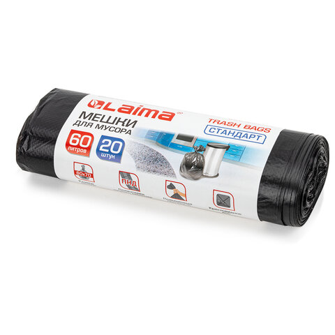 Пакеты для мусора на 60 л. 20шт./рул. "Laima" ПНД 10мкм. стандарт арт.601381