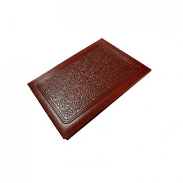 Адресная папка с тисненным узором, формат А4. Обложка коричневого цвета, выполнена из рециклированной кожи, бархатная вклейка. На данный товар можно нанести логотип. Папка адресная - прекрасный атрибут для официальных и праздничных мероприятий.