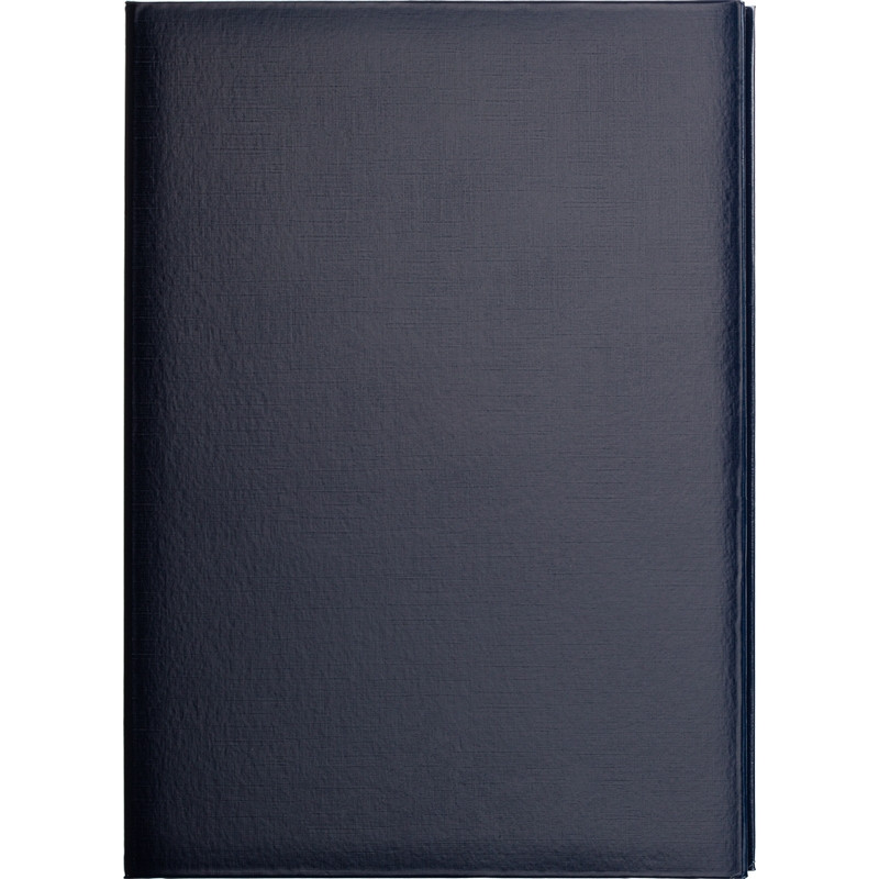 Адресная папка формата А4 изготовлена из бумвинила синего цвета (слой ПВХ на бумажной основе). Папка имеет гладкую поверхность. Внутри есть фиксирующая ленточка для бумаг. Адресная папка подходит для поздравлений, подачи документов на подпись.