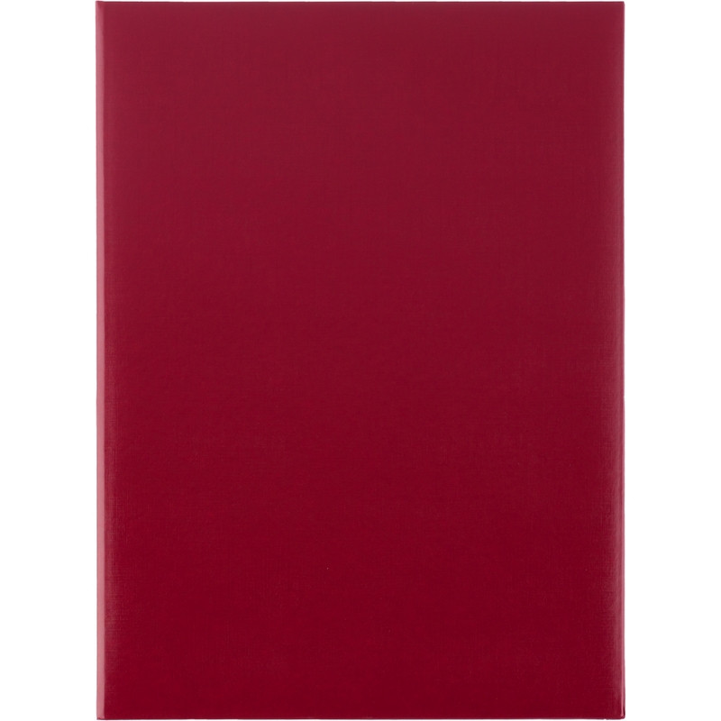 Адресная папка формата А4. Обложка изготовлена из бумвинила темно-красного цвета (слой ПВХ на бумажной основе). Папка имеет гладкую поверхность. Внутри есть фиксирующая ленточка для бумаг. Адресная папка подходит для поздравлений, подачи документов на подпись. На папку можно нанести логотип.
