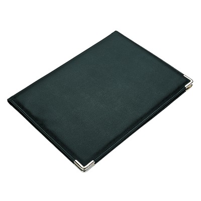 Экономичная адресная папка. Материал - искусственная кожа. Для бумаг формата А4. Два угловых кармана. Металлические уголки. Размеры: 330х250 мм. Цвет: черный.