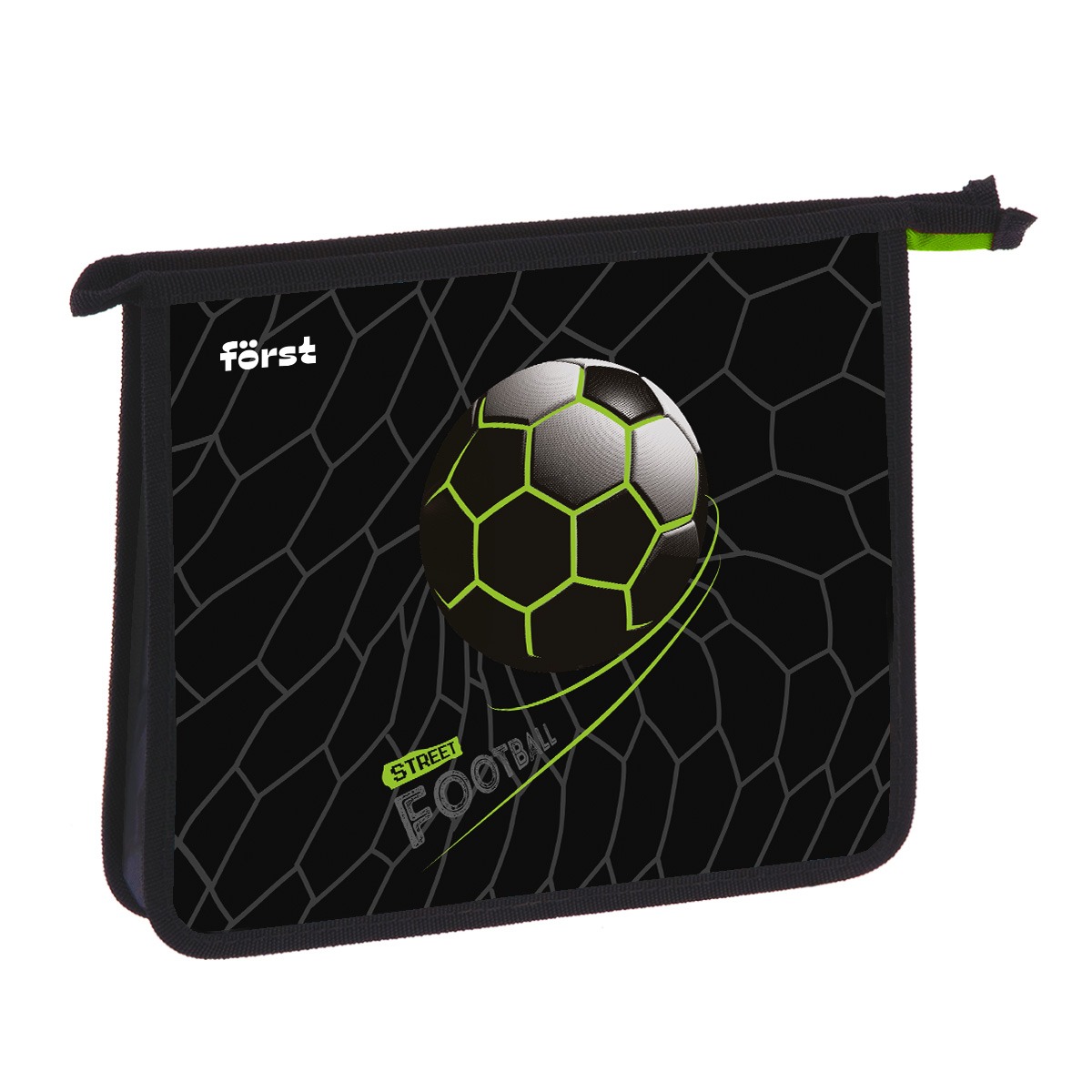Папка для тетрадей Först "Street Football" формата А5 предназначена для хранения учебных принадлежностей. Изделие размером 240*205*40 мм состоит из одного отделения. Застёжка-молния сверху надежно защищает содержимое от грязи и влаги. Края папки имеют тканевую окантовку. Изготовлена из высококачественного пластика. Дизайн папки понравится мальчику.