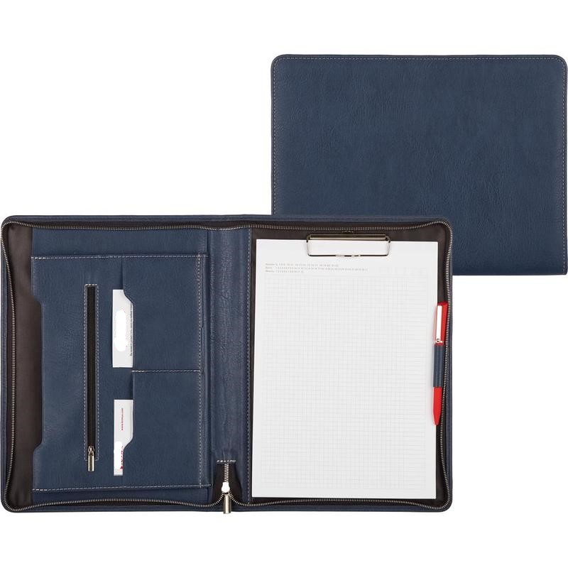 Папка эко кожа Алекс "Деловая" синяя на молнии №129