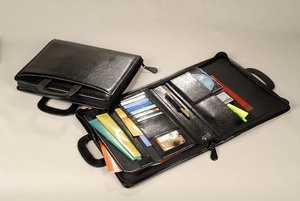 Папка «Навигатор» на застежке-«молнии». Благодаря задвижным ручкам, папку можно использовать и как портфель. Имеет два накладных кармана, внутреннее отделение, застегивающееся на кнопку, «петлю» для ручки и много кармашков разного размера. Размер, мм: 360х300