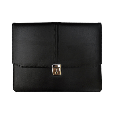 Объемная папка с клапаном на замке. Внутренние плоские карманы для документов. Цвет чёрный. Материал – заменитель кожи. Размер, мм: 370x270 мм