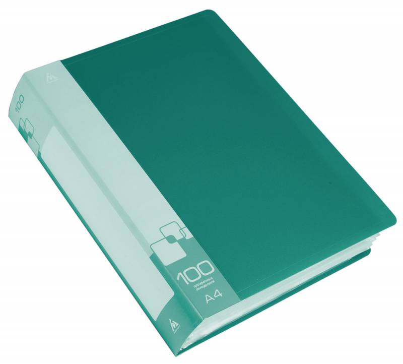 Папка с 100 прозр. вкладышами, ф.А4, пластик 0.80мм, торц. карман с бум. встав., черная, Россия