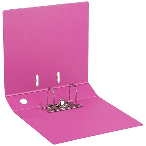 Папка-регистратор формата А4 с арочным механизмом выполнена из плотного картона цвета фуксии, снаружи и внутри обтянута пленкой из ПВХ. Нижний край — с дополнительным слоем ПВХ для предотвращения царапин на мебели. Механизм из стали не подвержен деформации. Специальные прорези на крышке не дают папке открываться при большом количестве вложенных документов. Корешок шириной 50 мм имеет кольцо для удобного захвата и прозрачный карман со сменной двусторонней этикеткой.