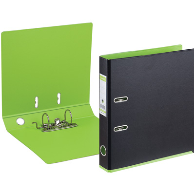 Папка-регистратор с арочным механизмом Bantex DoubleColour изготовлена из плотного картона, обтянута ПВХ. Цвет внешней поверхности — черный, внутренней — лайм. Формат А4. Нижние края папки защищены с помощью технологии Strong Line. На корешке шириной 50 мм есть пластиковый карман со сменной этикеткой и кольцо для удобства захвата. Папка-регистратор Bantex DoubleColour вмещает до 350 листов стандартной плотности.