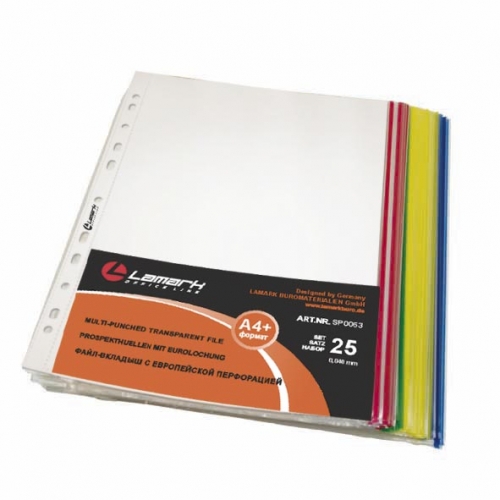 Артикул:SP0064, Название:Файл-вкладыш с перфорацией А4+ 0,040мм повышенной вместимости с цветным кантом, "яичная скорлупа", 100шт/упак, Торговая марка:Lamark, Страна:Германия, Упаковка:1/20