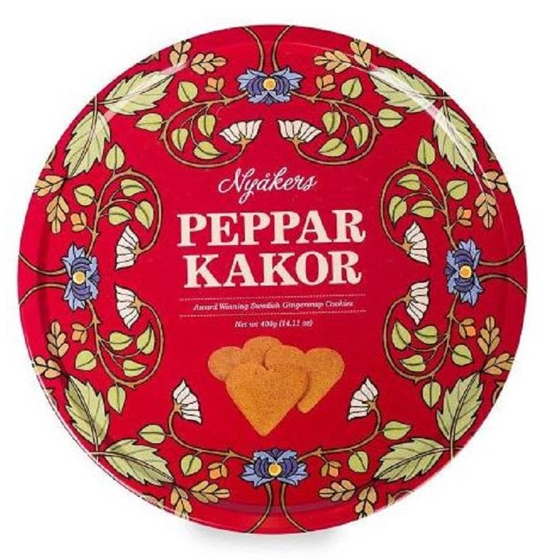 Печенье Nyakers Сердечки имбирное 400 г. Пищевая ценность: белки - 4,5 г, жиры - 15 г, углеводы - 67 г. Энергетическая ценность: 420 ккал/100 г. Состав: пшеничная мука, сахар, растительные масла (пальмовое, рапсовое, кокосовое), сахарный сироп, разрыхлитель: сода пищевая, гвоздика, корица, имбирь, эмульгаторы: моно- и диглицериды жирных кислот, соль, ароматизатор. Срок годности: 18 месяцев. Тип упаковки: жестяная банка. Хранить в сухом, свободном от запахов месте при температуре от 15°C до 20°C, относительной влажности воздуха не более 75%. Страна производства: Швеция.