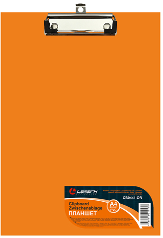 Планшет Lamark c верхним металлическим зажимом выполнен из плотного картона, заламинированного PVC пленкой. Толщина 2 мм. Цвет оранжевый. Для документов формата А4.