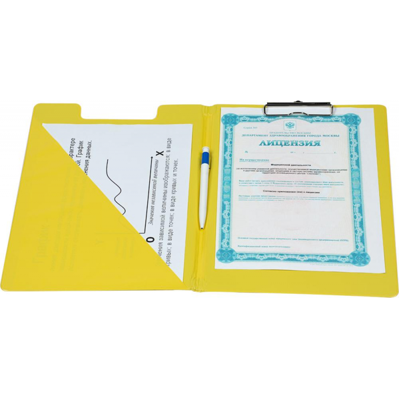 Папка-планшет Attache Bright colours формат А4 изготовлена из плотного картона, покрыта прочной пленкой ПВХ желтого цвета. Имеет откидную верхнюю крышку и выдвижной подвес. Имеет внутренний карман в цвет планшета на внутренней стороне верхней створки. Позволяет комфортно работать с документами на весу. Металлический прижим надежно удерживает листы и файлы.