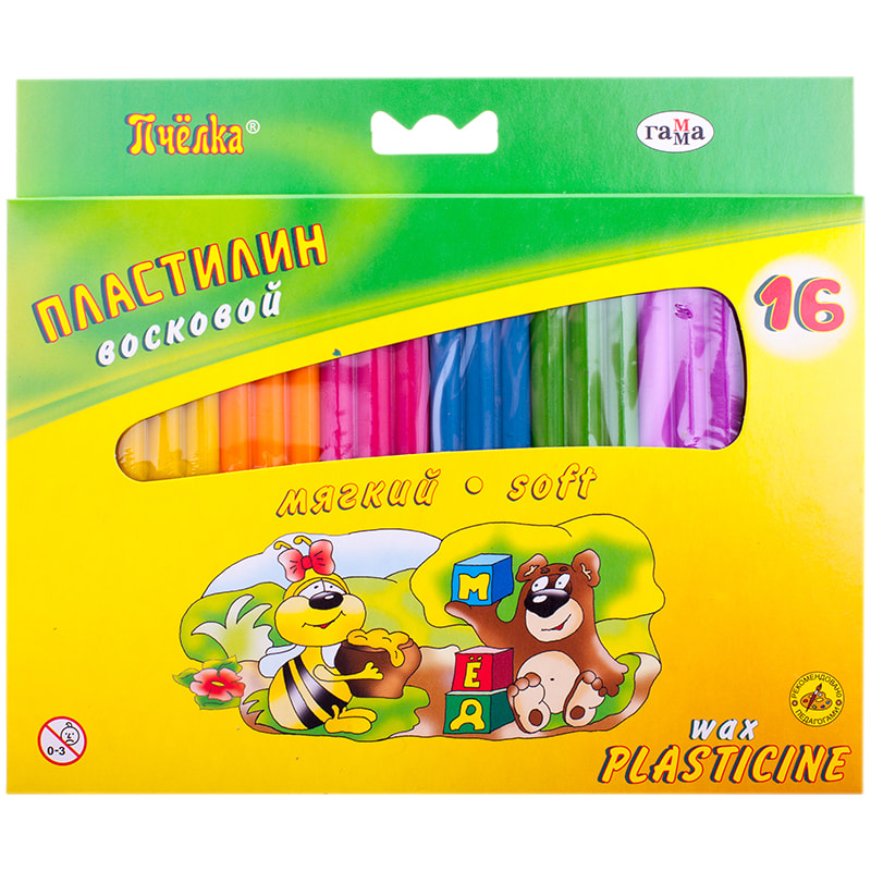 Пластилин "Гамма" 16 цв. 196 гр. "Пчелка" восковый со стеком арт. 280030Н