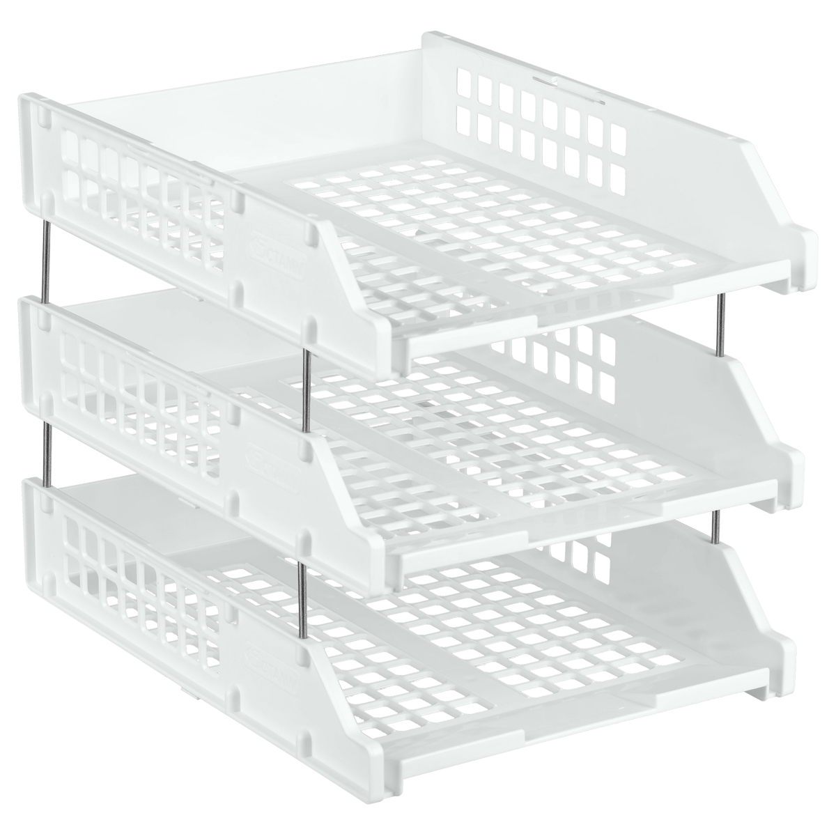 Набор из 3-х горизонтальных лотков "СТАММ" серии "Strong" предназначен для хранения и организации бумажной продукции формата А4. Функциональная конструкция позволяет вмещать большое количество документов за счет 8-ми металлических стержней в комплекте. Лотки изготовленные из качественного пластика надёжно фиксируются друг на друга. Конструкция предусматривает возможность установки верхнего лотка на 90 градусов. Лоток оборудован антискользящими вставками. Изделие высотой 267мм, глубиной 335мм и 255мм упакован в термоусадочную пленку и поставляется в разобранном виде. Цвет - белый.