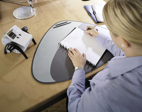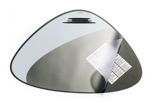 Настольное покрытие треугольной формы. Нескользящая основа, прозрачный верхний слой. Резиновые ограничители для ручки. Размер: 69 x 51 см.