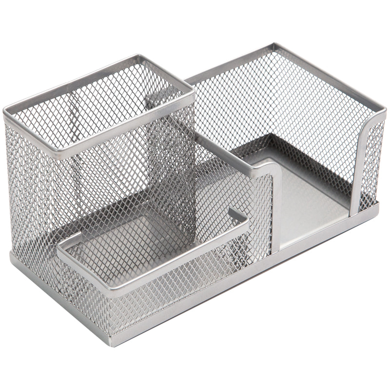 Вид товара настольная подставка Количество отделений 3 Вращающаяся основа нет Размер 10,2*18,6*9,5 см Материал корпуса металл Цвет серебристый