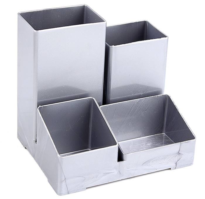 Подставка для канц/принадлежностей "СТАММ" Юниор серый металлик, 4 отдел. ОР26