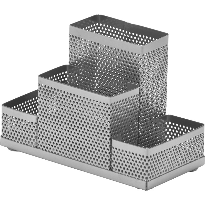 Подставка для канцелярских принадлежностей Attache Башня используется для хранения письменных принадлежностей и канцелярских мелочей, таких как скобы, зажимы, скепки, стикеры, ручки, карандаши и т.д. Эргономичная подставка-органайзер с 4 отделениями выполнена из легкой металлической сетки серебристого цвета. Эргономичная подставка будет стильно выглядеть на Вашем рабочем столе , особенно, если будет дополнена другими элементами коллекции из металла - лотками для бумаг, вертикальными накопителями. Размер изделия (ДхШхВ): 160х80х110 мм Поставляется без наполнения.