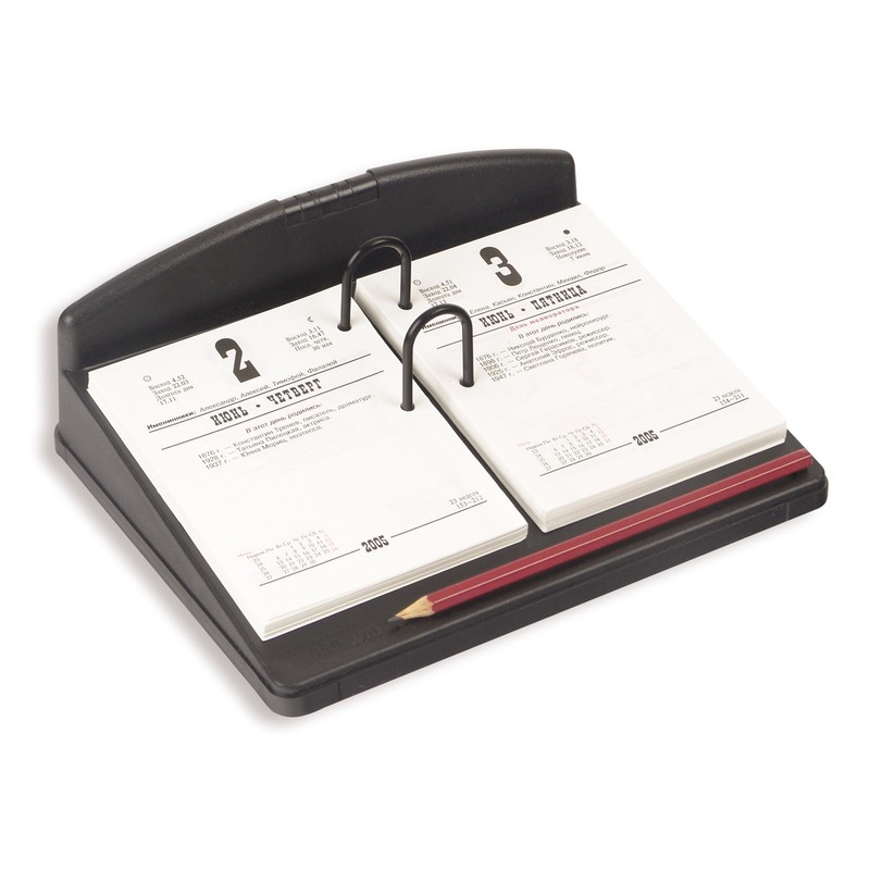 Подставка UNIPLAST для перекидных календарей черного цвета. Изделие оснащено двойным дуговым фиксатором и желобом для ручки или карандаша.
