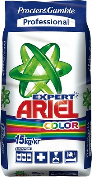 Ариель Колор Эксперт 15 кг — это безупречная чистота цветного белья! Разработан специально для профессионалов. Отстирывает до 250 кг белья.* *При среднем загрязнении белья, средней жесткости воды, для 5 кг стиральной машинки