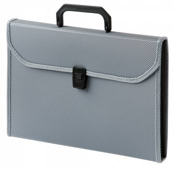 Папка-портфель с отделениями Бюрократ 6 отделений ребристая поверхность с окантовкой А4 пластик 0.7мм серый