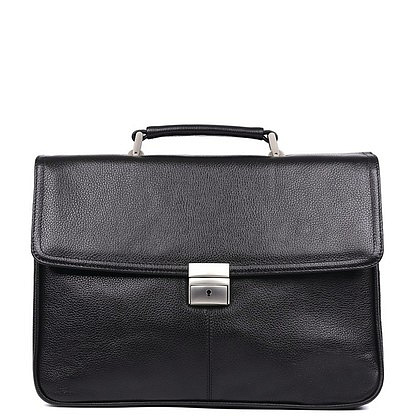 Портфель Fabretti 238CB из натуральной кожи черного цвета. Закрывается на клапан с замком-защелка и дополнительно на ключ. Размер: 36Х27Х12 см. Состоит из двух отделений. Основное отделение портфеля содержит боковой карман с уплотнённой стенкой с хлястиком на липучке для планшета или ноутбука, врезной карман на пластиковой молнии, два нашивных кармана для мелочей и телефона и два держателя для шариковых ручек. Спереди под клапаном расположено второе отделение для документов. На задней стенке расположен дополнительный прорезной карман на застежке-молнии. Модель вмещает формат А4. Портфель оснащен удобной ручкой. Вес изделия - 2.19 кг. Страна - Италия.