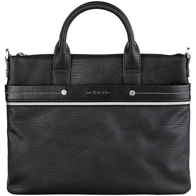 Черная кожаная сумка подходит и мужчинам, и женщинам.