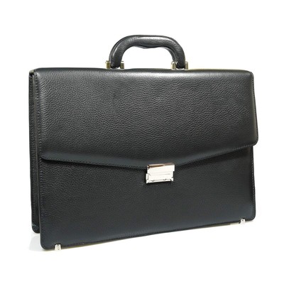 Портфель мужской снабжен ручкой и плечевым текстильным ремнем. Закрывается защелкивающимся замком. Размер& nbsp;— 40×29×9,5 см. Цвет кожи черный. На лицевой стороне под клапанной крышкой расположен карман размером 40×23 см, на обратной стороне — карман размером 40 ×23,5 см на молнии. Внутри два отделения для документов с перегородкой на молнии. На перегородке находится карман для мобильного телефона и три отделения для ручек. На противоположной стенке — карман на молнии. Толщина по нижнему краю портфеля 9,5 сантиметров.