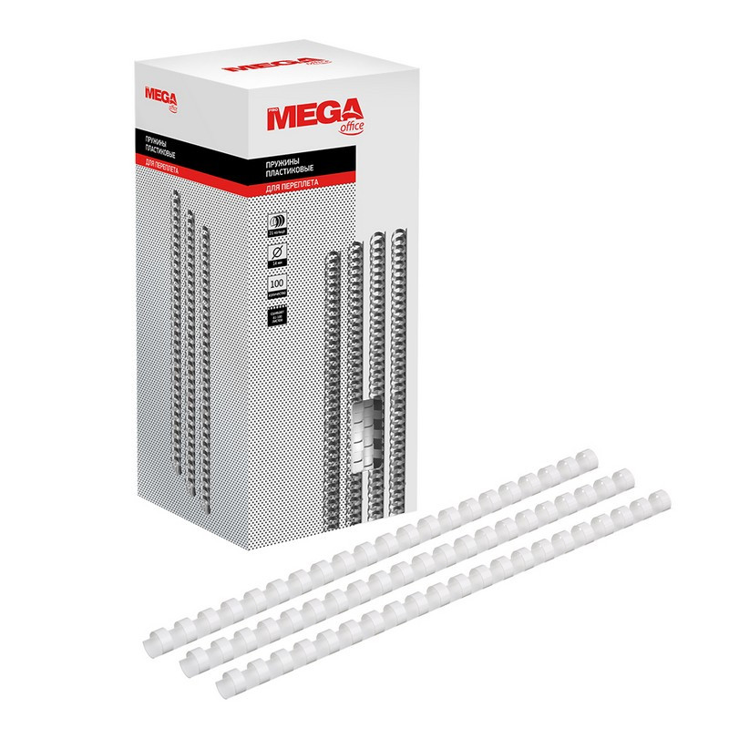 Пружины Promega office предназначены для сшивания до 100 листов формата А4 при помощи брошюровщика. Позволяют вынимать и добавлять листы в готовый документ. Изготовлены из прочного пластика белого цвета, состоят из 21 кольца диаметром 14 мм, шаг переплета - 3:1. Поставляются по 100 штук в упаковке.