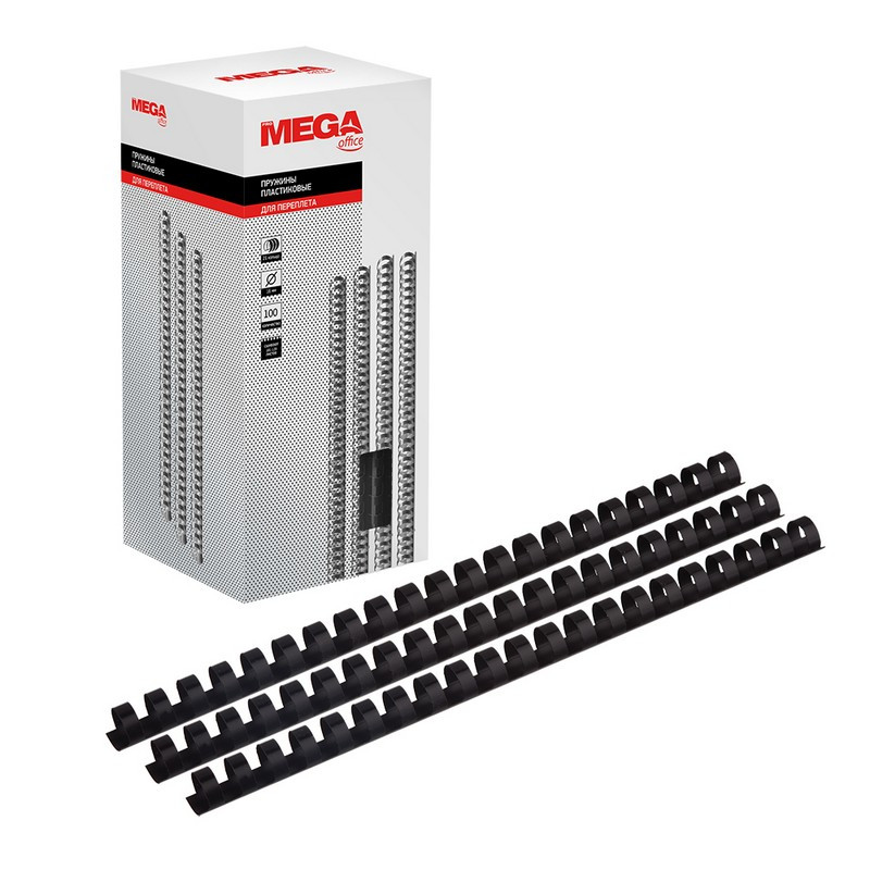 Пружины Promega office предназначены для сшивания до 120 листов формата А4 при помощи брошюровщика. Позволяют вынимать и добавлять листы в готовый документ. Изготовлены из прочного пластика черного цвета, состоят из 21 кольца диаметром 16 мм, шаг переплета - 3:1. Поставляются по 100 штук в упаковке.