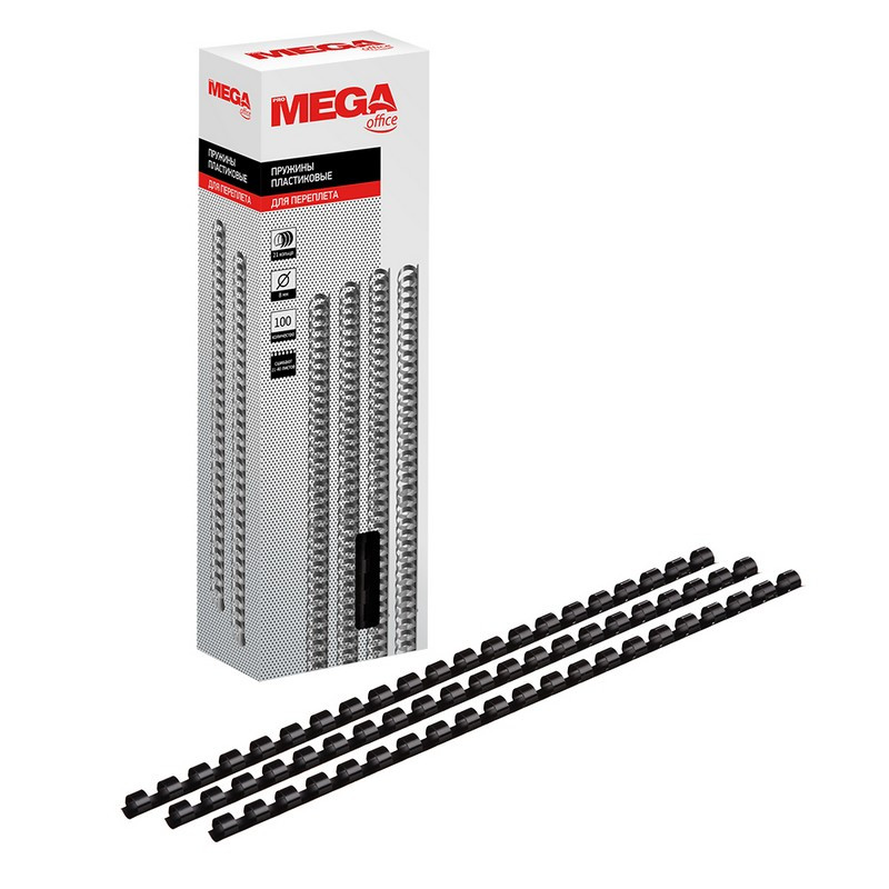 Пружины Promega office предназначены для сшивания до 40 листов формата А4 при помощи брошюровщика. Позволяют вынимать и добавлять листы в готовый документ. Изготовлены из прочного пластика черного цвета, состоят из 21 кольца диаметром 8 мм, шаг переплета - 3:1. Поставляются по 100 штук в упаковке.