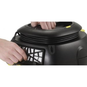 Высокая устойчивость и простота перемещения пылесоса за собой, превращают Karcher T 12/1 в исключительно маневренный аппарат. Корпус из ударопрочной пластмассы очень прочен и устойчив к соударениям. Защитная кромка по периметру мусоросборника оберегает аппарат и мебель от повреждений при соударениях. Эргономичная ручка и малый вес позволяют легко перемещать аппарат даже по лестницам.