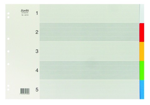 Разделитель цветной 5 л. пластик. А3 Bantex горизонтальный 6018