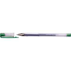 Ручка гелевая зеленая PLASMA с металлическим наконечником 0,5 мм в прозрачном корпусе, клип в цвет чернил.