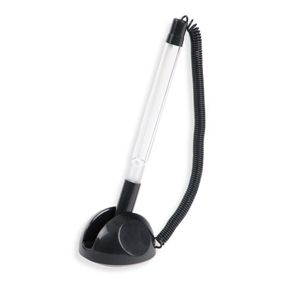Шариковая ручка Beifa с чернилами синего цвета. Изделие прикреплено к подставке с помощью резинового шнура-пружины. Благодаря липкому слою на основании подставки, она может быть зафиксирована на любой ровной поверхности. Изделие имеет прозрачный корпус. При письме стержень, оснащенный шариком, оставляет линию, толщина которой составляет 0,5 мм.