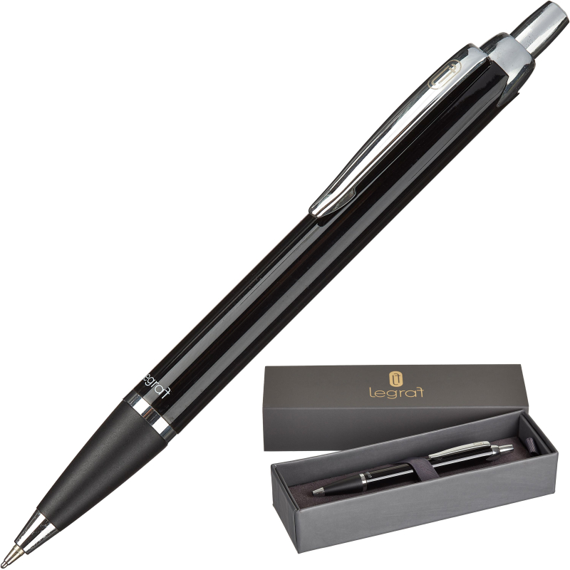 Шариковая ручка Legraf Rouan с кнопочным механизмом выполнена из латуни. Корпус имеет глянцевое черное покрытие и детали серебристого цвета. Ручка поставляется в престижной подарочной коробке. Толщина линии письма 0.5 мм. Цвет чернил - синий.