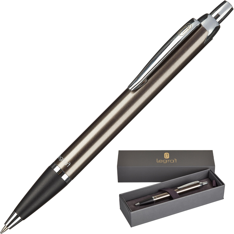 Шариковая ручка Legraf Rouan с кнопочным механизмом выполнена из латуни. Корпус имеет коричневое покрытие и детали серебристый цвета. Ручка поставляется в престижной подарочной коробке. Толщина линии письма 0.5 мм. Цвет чернил - синий.